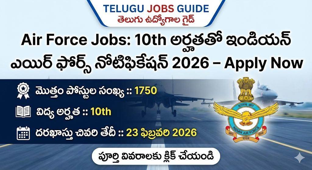 Air Force Jobs 2026 – 10th అర్హతతో ఇండియన్ ఎయిర్ ఫోర్స్ Agniveervayu Non Combatant నోటిఫికేషన్, చివరి తేదీ 23 ఫిబ్రవరి 2026