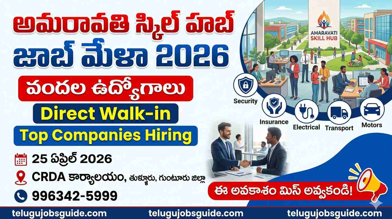 అమరావతి స్కిల్ హబ్ జాబ్ మేళా 2026 – వందల ఉద్యోగాలు | Direct Walk-in | ఏప్రిల్ 25, తుళ్ళూరు