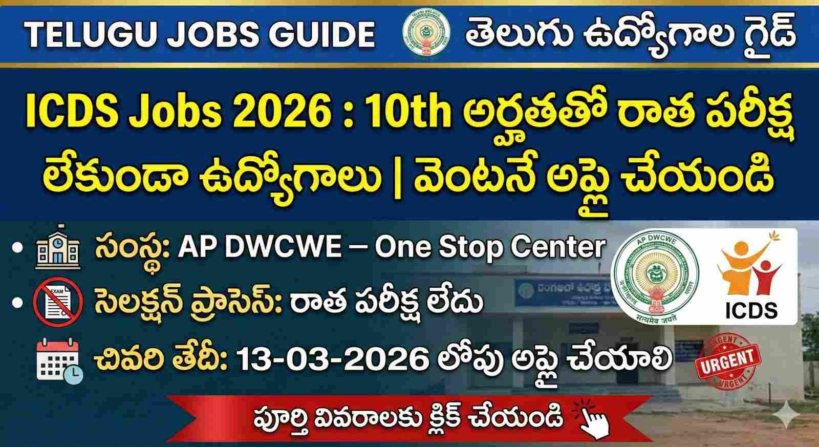 ICDS JOBS : 10th అర్హతతో రాత పరీక్ష లేకుండా డైరెక్ట్ ఎంపిక | AP DWCWE One Stop Center Jobs 2026