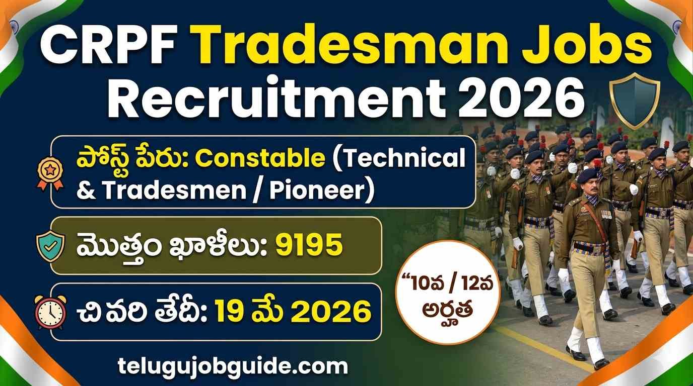 Constable Jobs 2026: 10వ / 12వ అర్హతతో CRPFలో 9195 ఉద్యోగాలు – వెంటనే అప్లై చేయండి | CRPF Tradesman Jobs Recruitment 2026