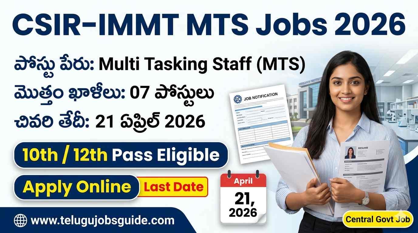 CSIR-IMMT MTS Jobs 2026: 10వ అర్హతతో మల్టీ టాస్కింగ్ స్టాఫ్ ఉద్యోగాలు | Apply Online