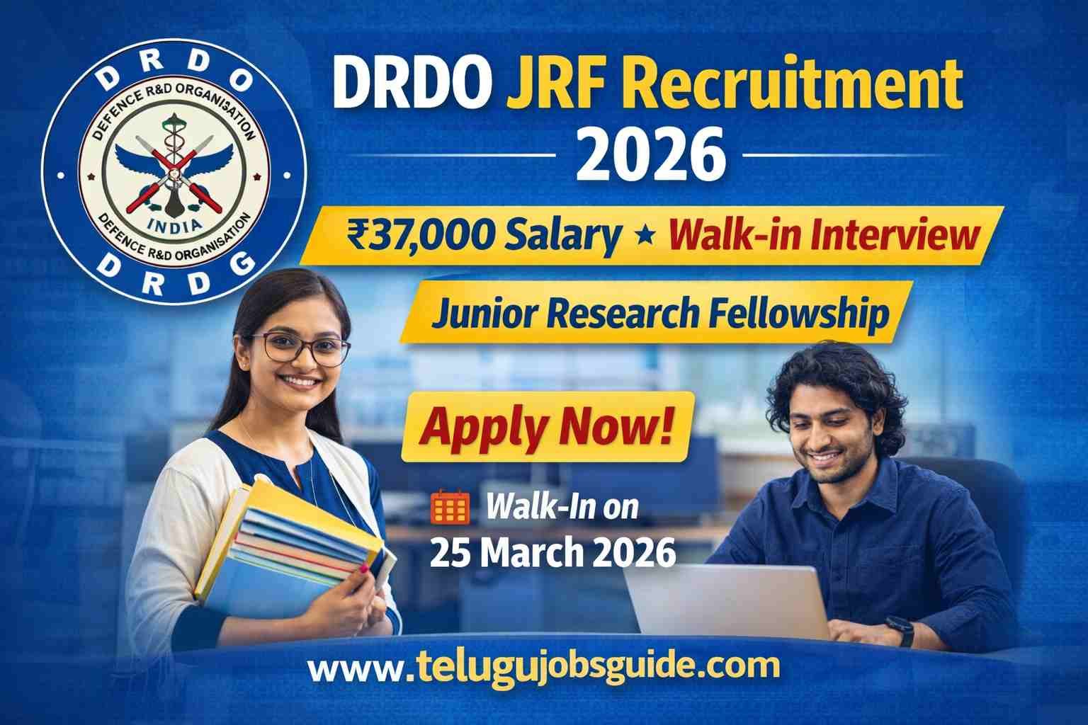డిగ్రీ అర్హతతో DRDO లో జాబ్ అవకాశం – నెలకు ₹37,000 స్టైపెండ్ | DRDO JRF Recruitment 2026