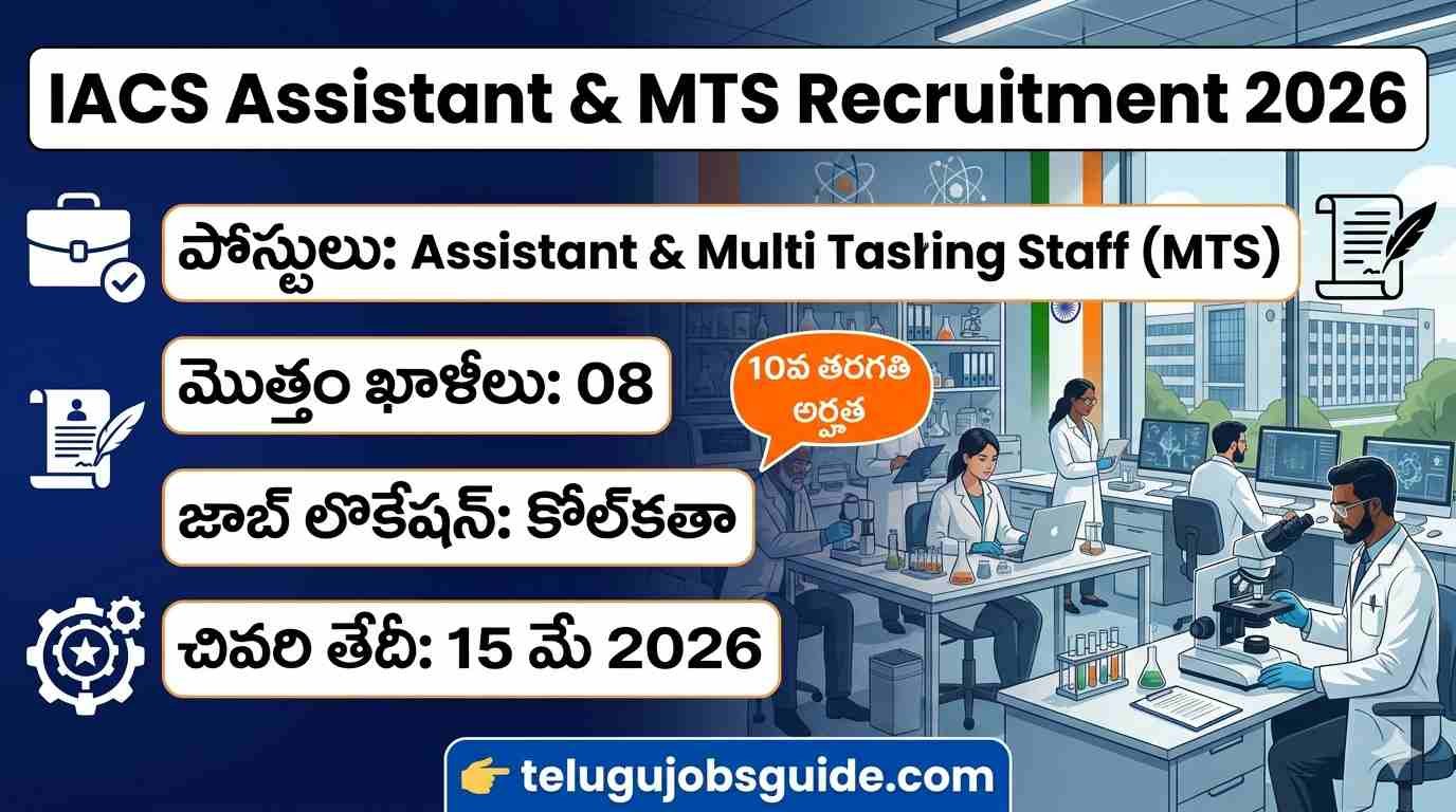 10వ తరగతి అర్హతతో Assistant & MTS ఉద్యోగాలు – వెంటనే అప్లై చేయండి | IACS Assistant & MTS Recruitment 2026