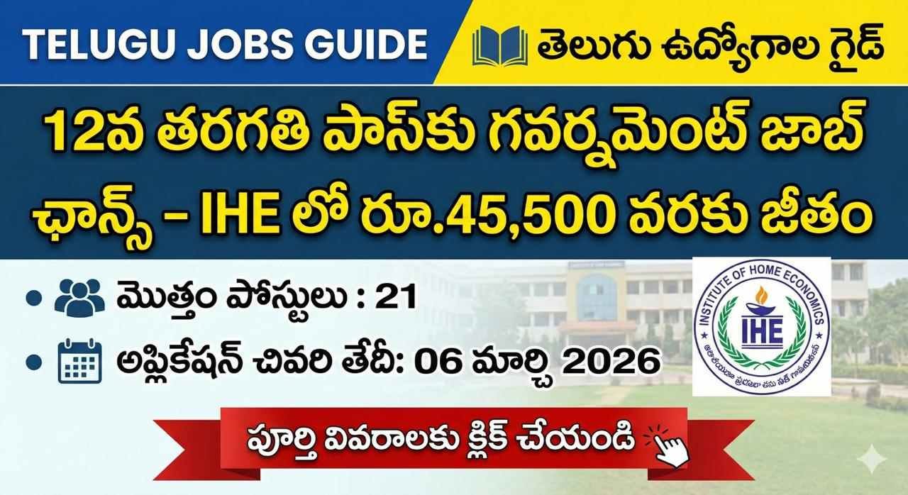 IHE నోటిఫికేషన్ 2026 | 12వ తరగతి అర్హతతో ప్రభుత్వ ఉద్యోగాలు – రూ.45,500 వరకు జీతం | IHE Notification 2026