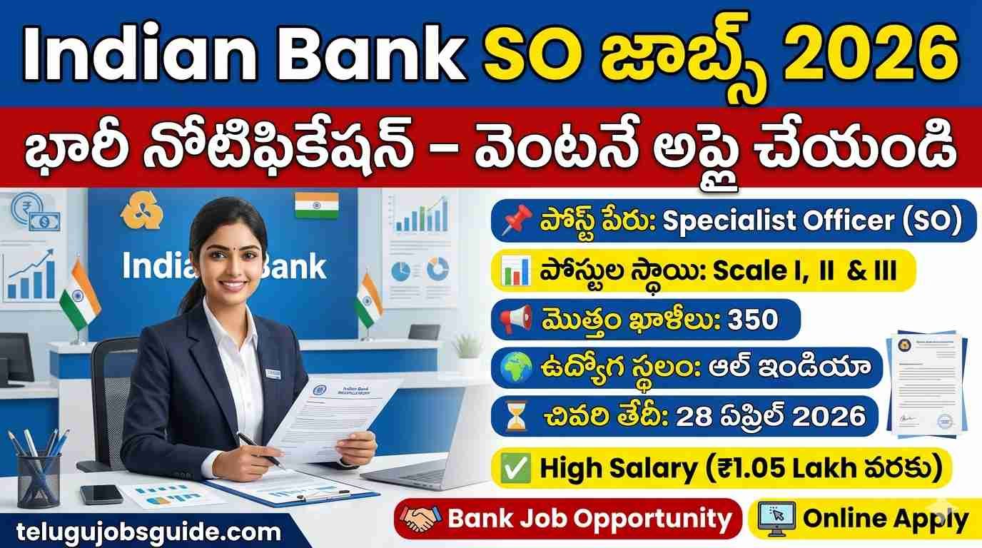Indian Bank SO జాబ్స్ 2026 🔥 | 350 పోస్టులు | ₹1.05 లక్షల జీతం | ఏప్రిల్ 28 లోపు అప్లై చేయండి