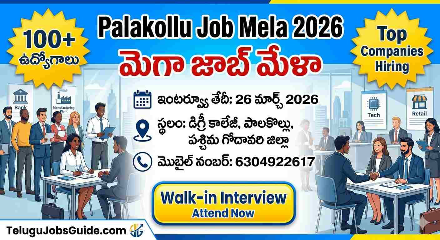 నిరుద్యోగ యువతకు ఇది ఒక గొప్ప అవకాశం! పశ్చిమ గోదావరి జిల్లా పాలకొల్లులో నిర్వహించబడుతున్న ఈ మెగా జాబ్ మేళా ద్వారా ప్రముఖ కంపెనీల్లో వందల సంఖ్యలో ఉద్యోగాలు అందుబాటులో ఉన్నాయి.