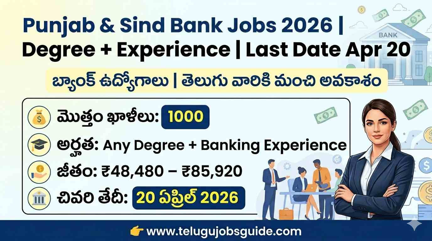 Bank Jobs 2026: తెలుగు భాష తెలిసినా చాలు… Punjab and Sind Bank భారీ నోటిఫికేషన్ – వెంటనే అప్లై చేయండి|Punjab and Sind Bank Jobs 2026