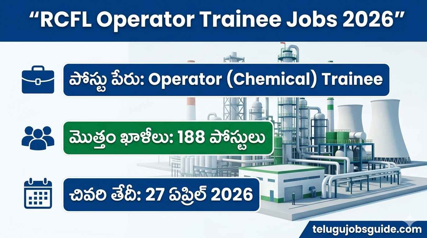 నిరుద్యోగ అభ్యర్థులకు మరో మంచి అవకాశాన్ని Rashtriya Chemicals and Fertilizers Limited (RCFL) అందిస్తోంది. ఈ సంస్థ తాజాగా Operator (Chemical) Trainee పోస్టుల భర్తీకి నోటిఫికేషన్ విడుదల చేసింది.