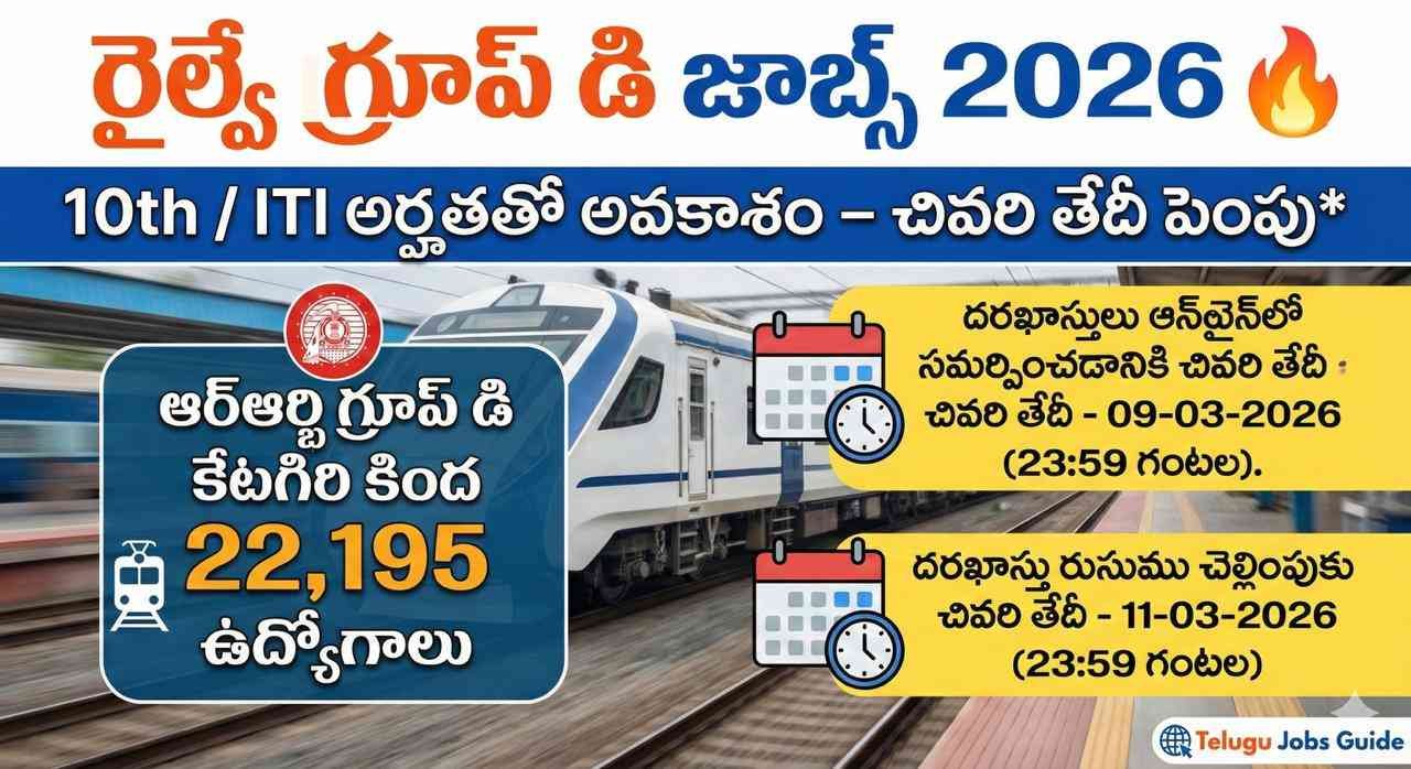 Railway Jobs 2026: 10వ తరగతి / ITI అర్హతతో RRB Group D ఉద్యోగాలకు గడువు పొడిగింపు | RRB Group D Recruitment 2026 Last Date Extended