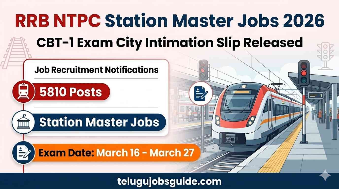 RRB NTPC Station Master Jobs 2026: విద్యార్థులకు ముఖ్య సమాచారం – రైల్వే CBT-1 పరీక్ష City Intimation Slip విడుదల